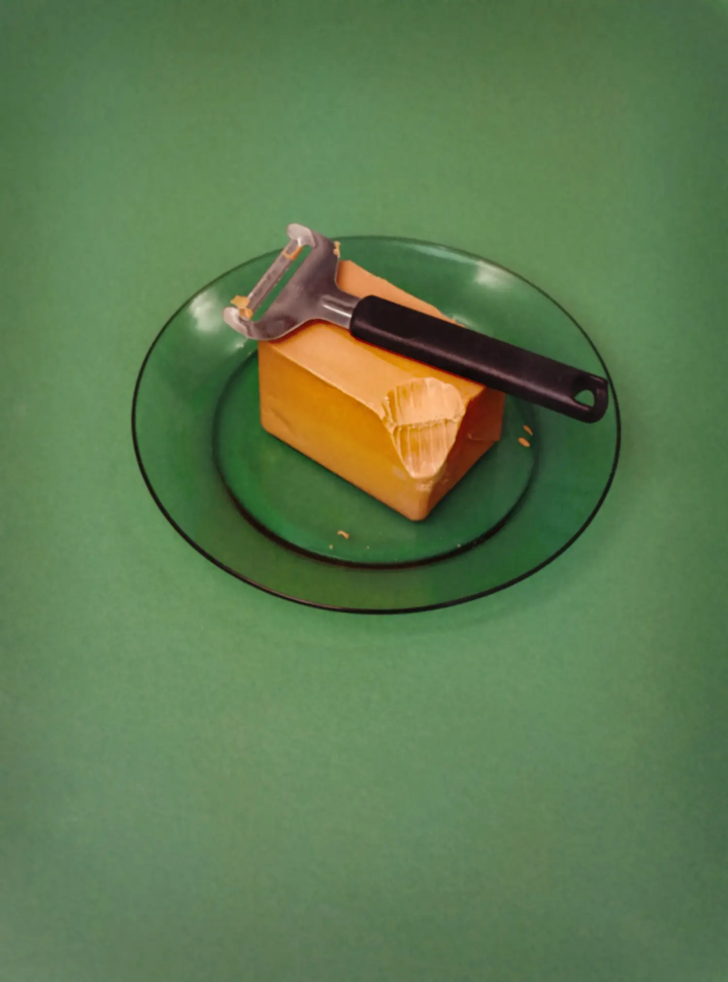 In one, a shadowed hand reaches for a vibrantly sharp pear, sliced on a green background. The photograph is beautiful but also melancholic; the impossibility of the shadow’s longing for the color and sweet juice of the fruit.